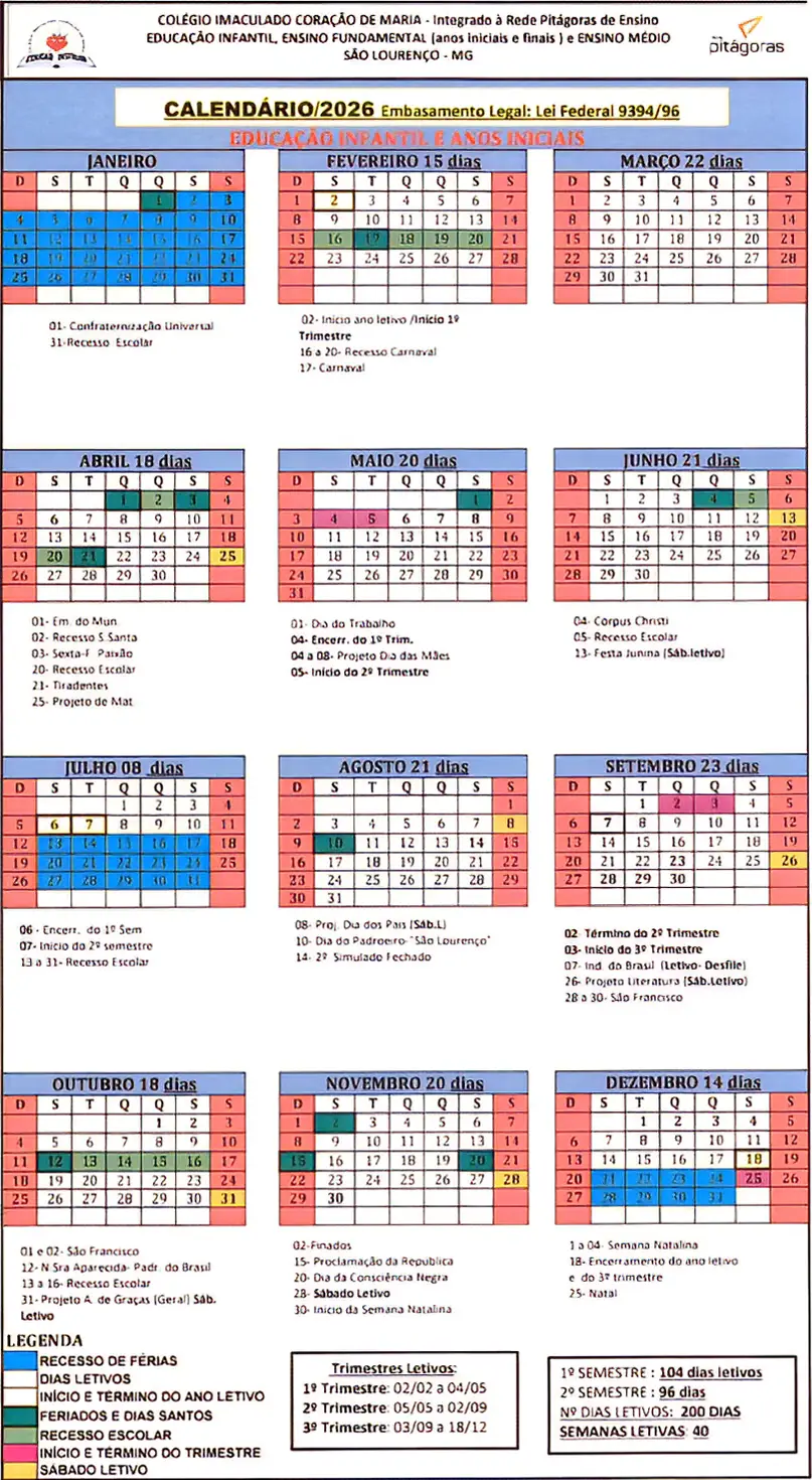 Calendário Educação Infantil e Anos Iniciais