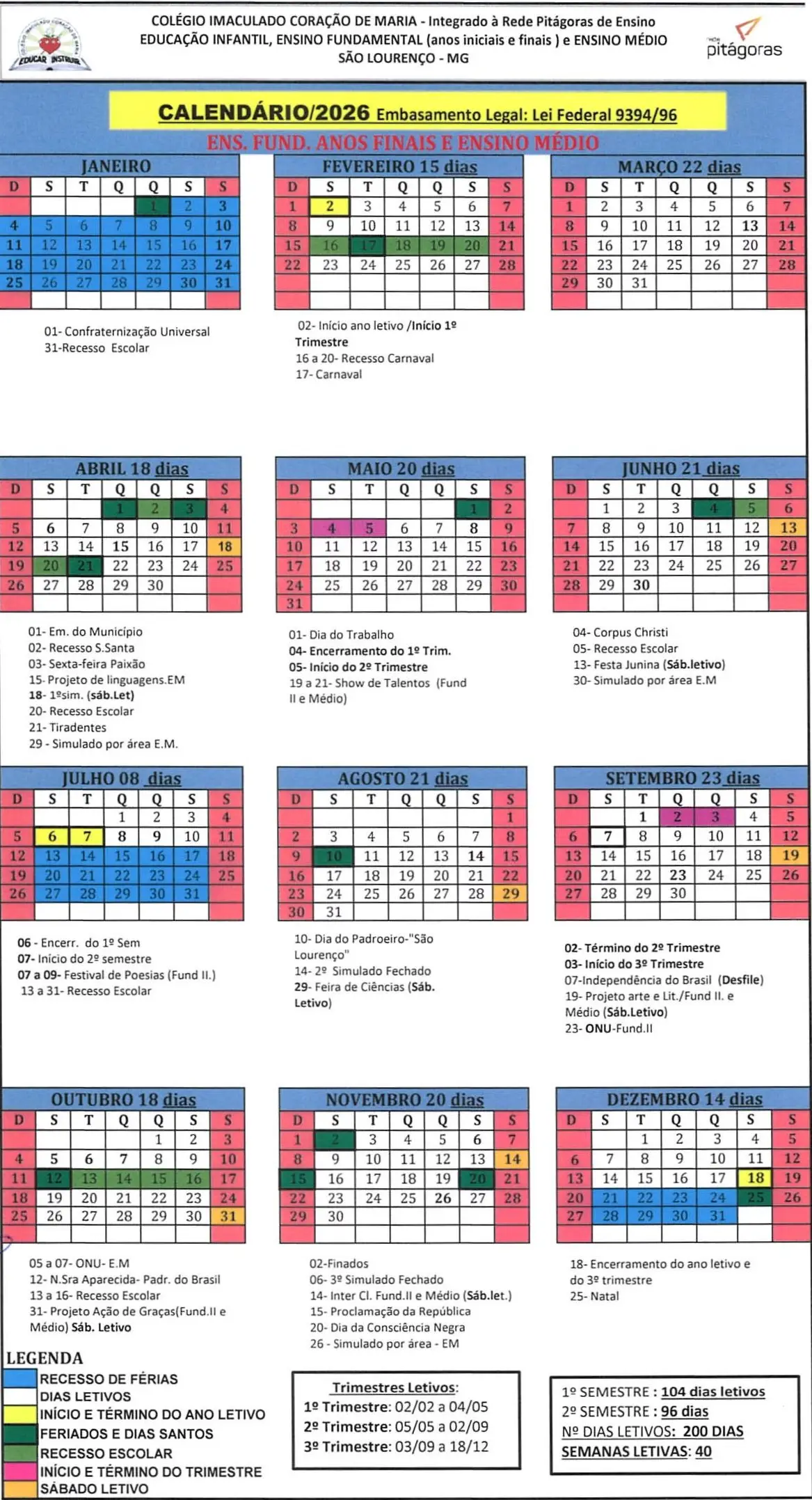 Calendário Ens. Fund. Anos Finais e Ensino Médio